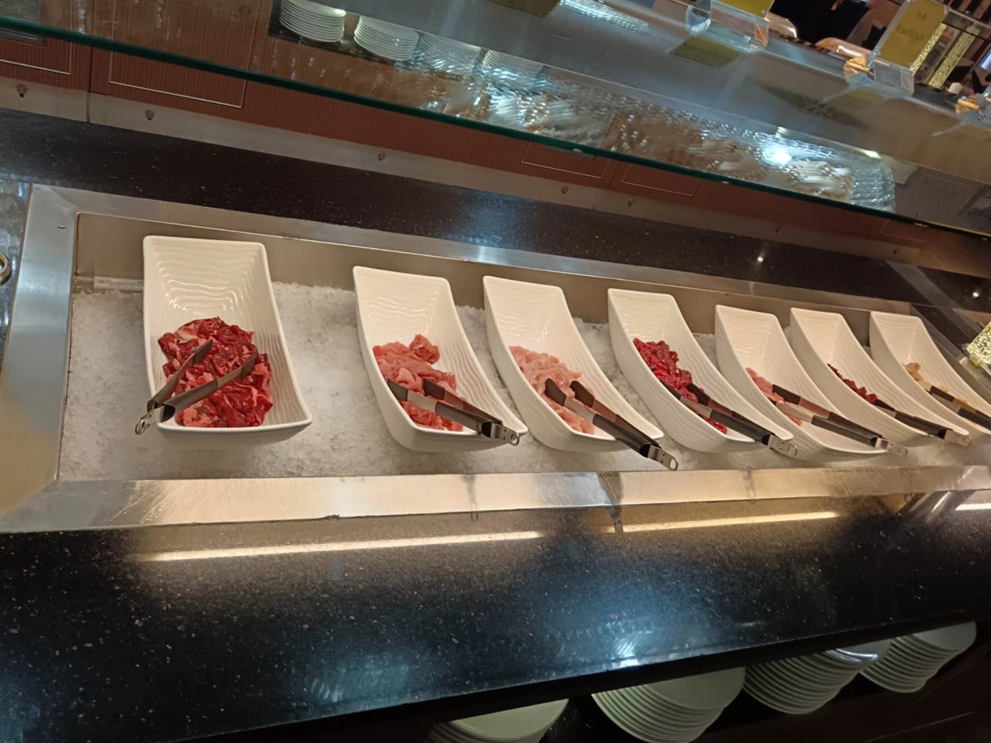 Zarte Filets von Rind, Huhn, Ente und Schwein warten darauf, frisch am Grill zubereitet zu werden.